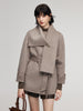 Alpaca Wool Blend Double-Faced Women Wrap Coat With Scarf GOELIA