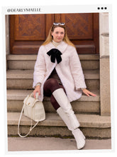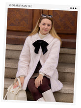 White Mid-Length Velour Women Coat With Bowknot