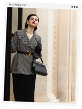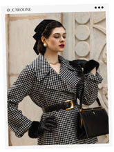 The black and white houndstooth print is a sartorial staple, yet it remains fresh and dynamic, perfect for adding a graphic punch to the winter palette. The coat's thoughtful design features such as wide lapels and a knee-length cut, offer versatility and coverage, suitable for the brisk urban commute or a chic evening affair. This piece is not just a nod to the heritage of fashion but also an embrace of innovation with its washable feature, ensuring that style and convenience go hand-in-hand.