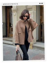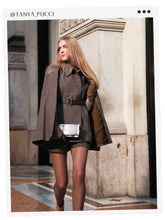 Coffee Brown Washable Wool Cloak And Vest Two-Piece Set