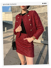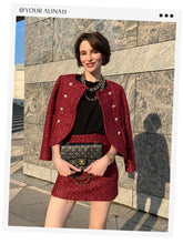 Red Double-Breasted Tweed Crop Women Jacket