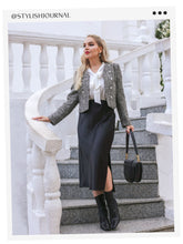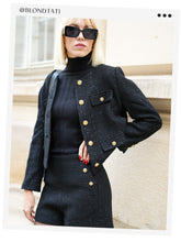Elegant Black Tweed Cropped Women Jacket
