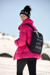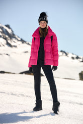 The Short Goose Down Garment is a vibrant addition to GOELIA's innovative down jacket line, perfect for the active holiday skier. Its brilliant pink hue ensures visibility on the ski slopes, while the practical design doubles as a backpack, making it perfect for those who prioritize functionality without compromising on style. The jacket's plush goose down insulation is essential for warmth, yet its compactness when stored highlights its versatility. This piece is an emblem of adaptability, designed for the skier who delights in winter sports during the day and cherishes ease of movement and convenience for après-ski activities.