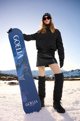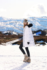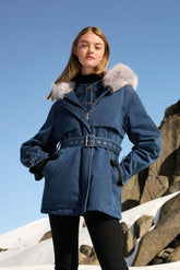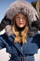 The Denim Hooded Gathered Waist Goose Down Garment brings a touch of rugged elegance to the GOELIA collection, ideal for those who want to make a statement on their ski holiday. This jacket combines the classic appeal of denim with the luxurious warmth of goose down, bridging the gap between casual wear and winter functionality. The fur-trimmed hood adds an extra layer of warmth, making it perfect for those chilly chairlift rides, while the gathered waist provides a flattering silhouette. It’s a versatile piece that is as suited to the après-ski scene as it is to the slopes, ensuring that wearers enjoy both warmth and a dash of denim chic. This garment redefines skiwear, offering a unique blend of style and practicality for the fashion-forward skier.