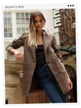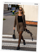 Embrace a sophisticated and coordinated look with the brown washable wool suit jacket. When paired with the matching skirt and a dark inner layer, this ensemble exudes professionalism and style. The rich, autumnal tones create a warm and polished aesthetic, making it an ideal choice for work or formal occasions. The harmonious blend of colors and textures showcases the versatility of GOELIA's autumn collection, providing a perfect balance between classic tailoring and contemporary flair.