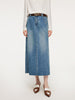 [Preview] Lyocell Cotton Blend Denim Frayed Hem Women Skirt With GO Letter Leather Belt GOELIA