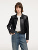 [Preview] PU Leather Embroidered Trim Women Cropped Jacket