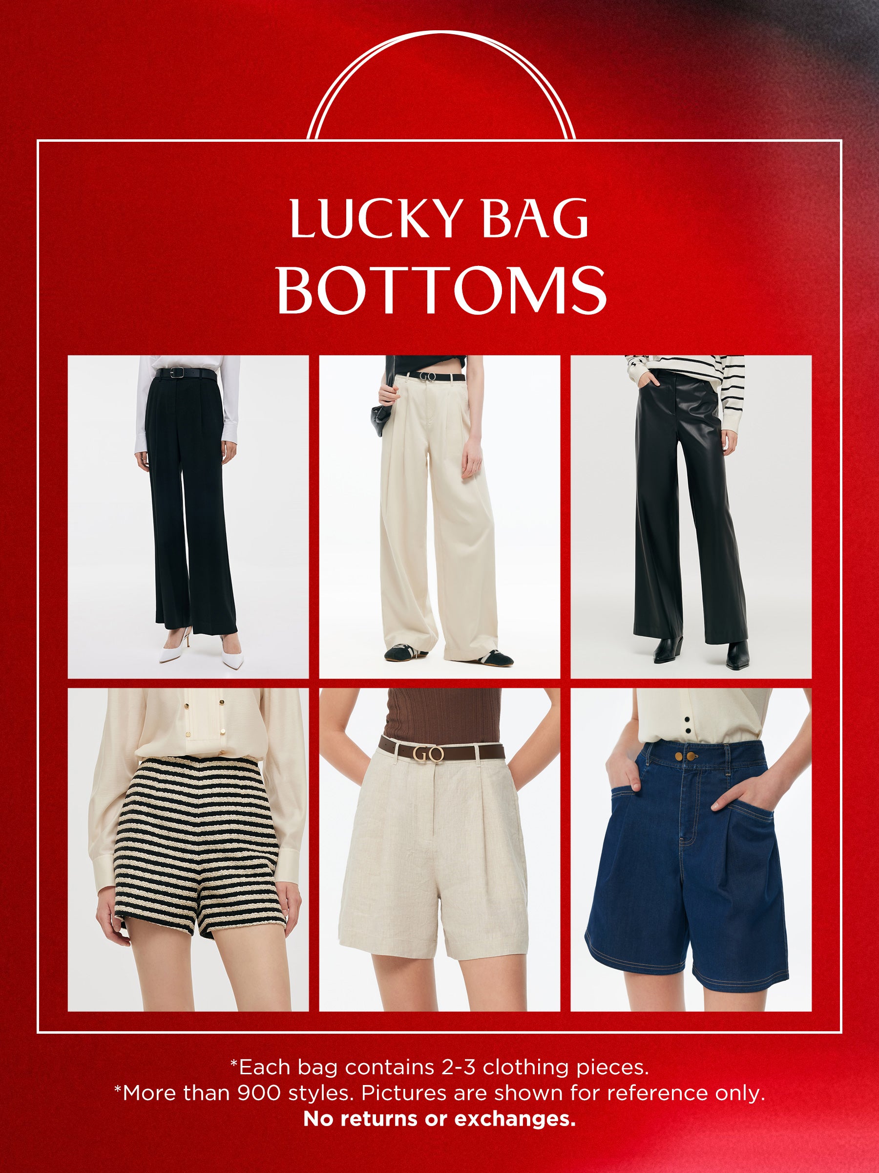 盡情享受 Goelia 的下身福袋帶來的驚喜吧!每個福袋內含 2-3 件來自不同季節的全新高品質下身服飾。商品隨機挑選,為您的衣櫥增添驚喜元素。請注意,鑑於此優惠的特殊性,所有銷售均為最終銷售。別錯過——立即搶購您的下身福袋!